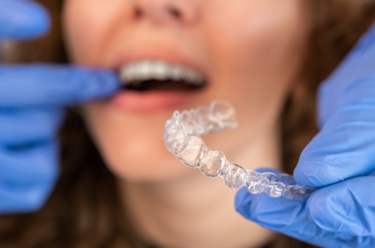 Custom made transparent trays that align teeth over time. Clear aligners are removable, easy to clean, and offer a discreet, comfortable alternative to traditional braces for teens and adults.